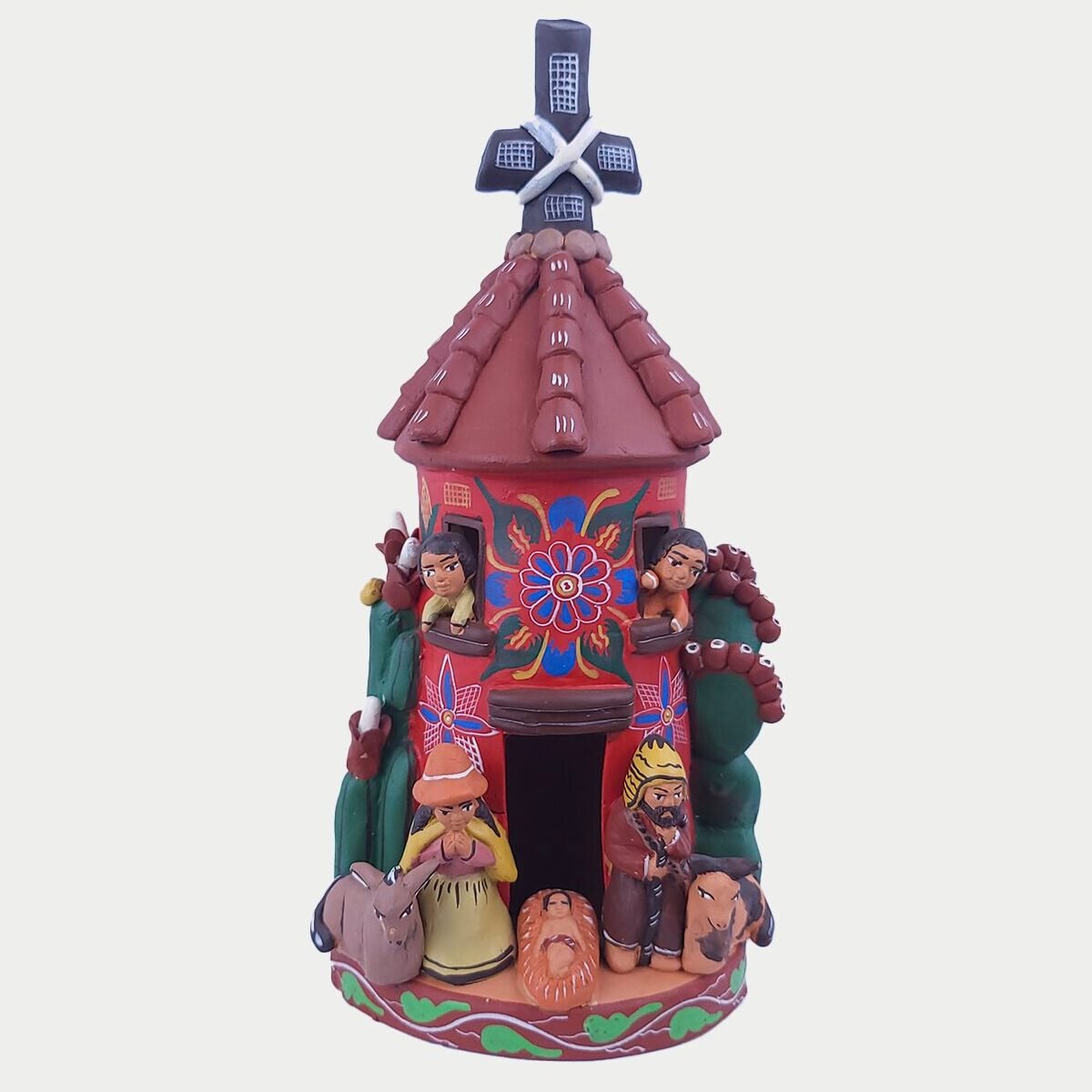 Presepe artigianale in terracotta ispirato alla tradizione peruviana con campanile caratteristico. Questo modello si distingue per la qualitร della terracotta e per i dettagli ricercati, che lo rendono un elemento esclusivo . Realizzato interamente a mano, รจ ideale per chi cerca un presepe originale che sappia coniugare tradizione e artigianato. Perfetto come idea regalo o per arricchire la propria collezione.