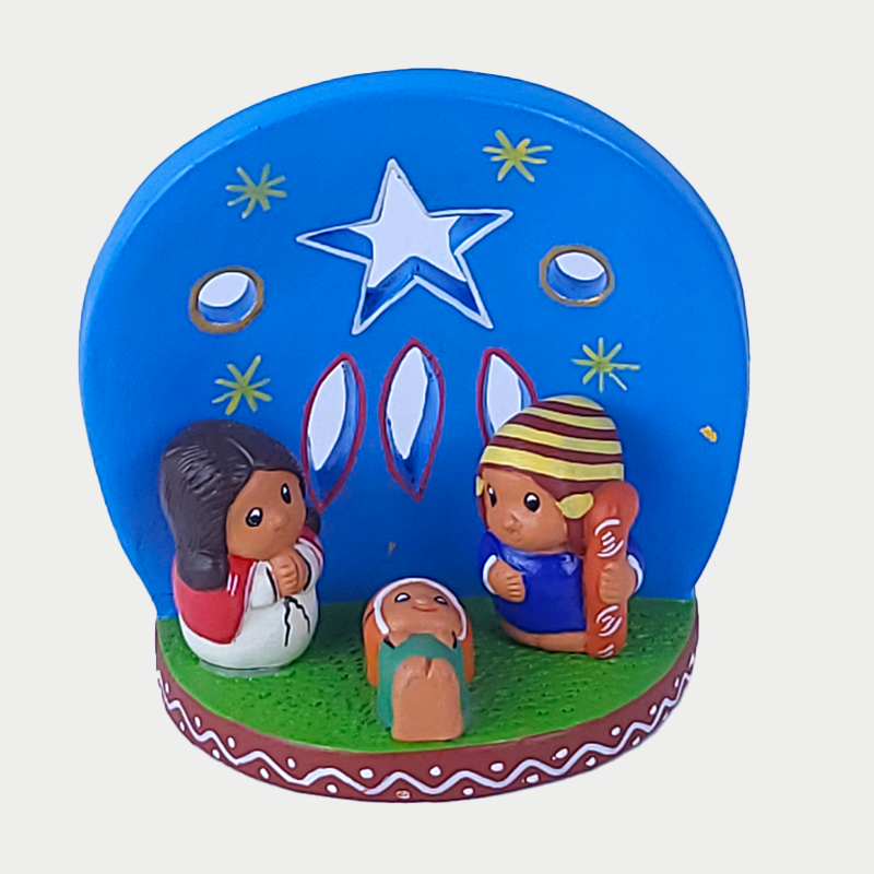 Presepe artigianale in terracotta ispirato alla tradizione peruviana. con sfondo stellato caratteristico Questo modello si distingue per la qualitร della terracotta e per i dettagli ricercati, che lo rendono un elemento esclusivo . Realizzato interamente a mano, รจ ideale per chi cerca un presepe originale che sappia coniugare tradizione e artigianato. Perfetto come idea regalo o per arricchire la propria collezione.